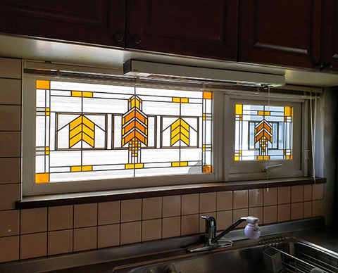 同じモチーフでデザインを少し変えて統一感のあるステンドグラスになっています。