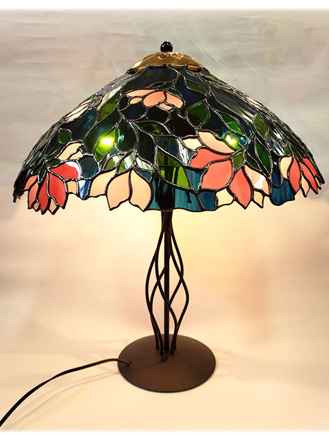 夜のような落ち着きと、華やかさがあるランプです。 ※同じガラスとベースが手に入らないのですが 似たものは制作できます。 デザインも手描きなので、少し変更になるかもしれません。 お問合せください。